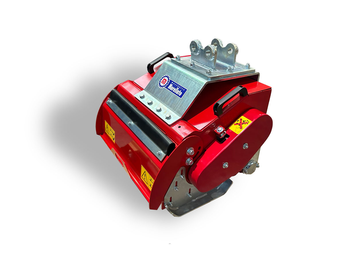 Der Hydraulikmotor ist im robusten Rahmen aus gehärtetem Stahl untergebracht, die Kraftübertragung erfolgt über Riemen. Sie sind mit einem elektronisch ausgewuchteten Rotor und Y-förmigen Schürfkellen oder austauschbaren Hämmern ausgestattet. Anbaugerät und Hydraulikmotor sind speziell auf das jeweilige Baggermodell und die Leistung der Zusatzpumpe abgestimmt.